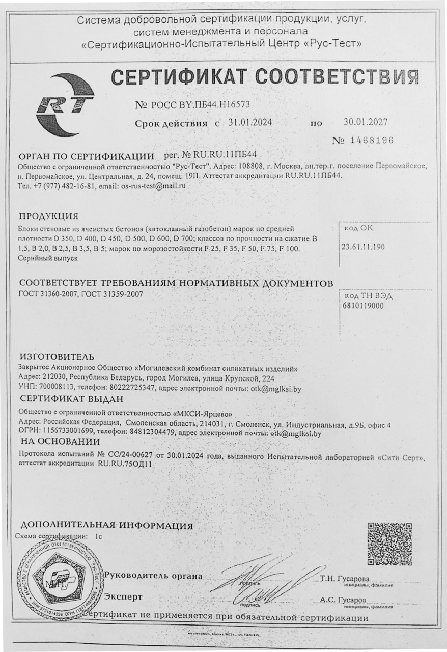 Газобетонные блоки Могилевский КСИ D500 отличаются высокой прочностью и долговечностью. Они способны выдерживать значительные нагрузки, что делает их идеальным выбором для строительства несущих стен и перегородок.